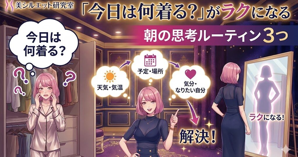 「今日は何着る?」がラクになる|朝の思考ルーティン3つ 朝、クローゼットの前で立ち止まってしまう。服はあるのに、なぜか決まらない。 そんな日は、「服がない」のではなく、考える順番がバラバラなだけかもしれません。 美シルエ…