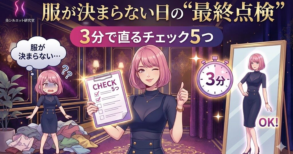 服が決まらない日の“最終点検”|3分で直るチェック5つ 朝、鏡の前で立ち止まってしまう日。「服が似合わない」「なんか今日は決まらない」 そんな日は、センスでも体型でもなく、“土台のズレ”が原因なことがほとんどです。 今日…