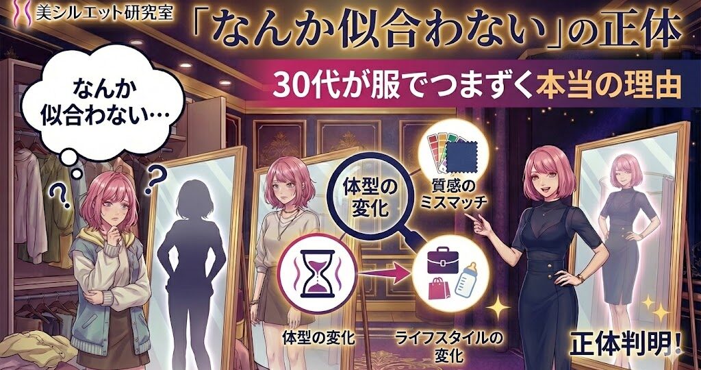 30代に入ってから、こんなことを感じたことはありませんか? 「昔はもっと服選びが楽しかった気がする」「試着しても、しっくりこない服が増えた」「結局、無難な服ばかり選んでしまう」 流行が分からなくなったわけでも、体型が急に…